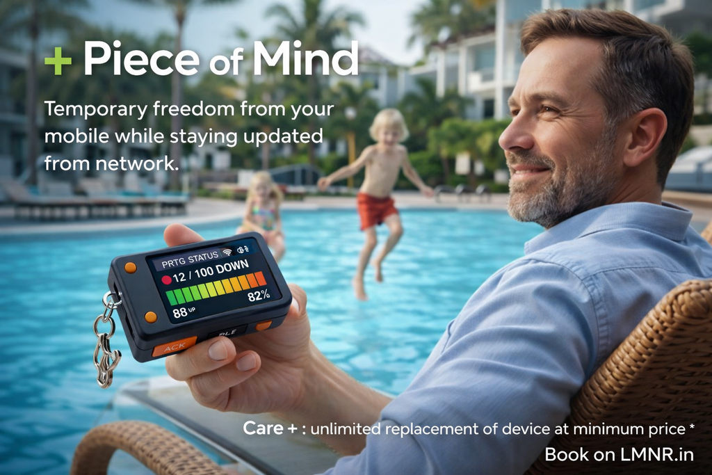 The PRTG WiFi + Bluetooth Smart Monitor is a compact, portable network alert device designed for IT professionals, system administrators, and business owners who want peace of mind with real-time network visibility — without constant phone notifications.
