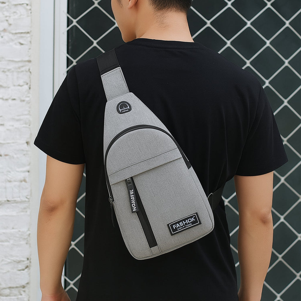 13112 Waterproof Anti Theft Cross-body fanny pack waist bag, Shoulder Bags Chest Men Casual fashion USB Charging earphone hook Sling Travel Bag (1 Pc)